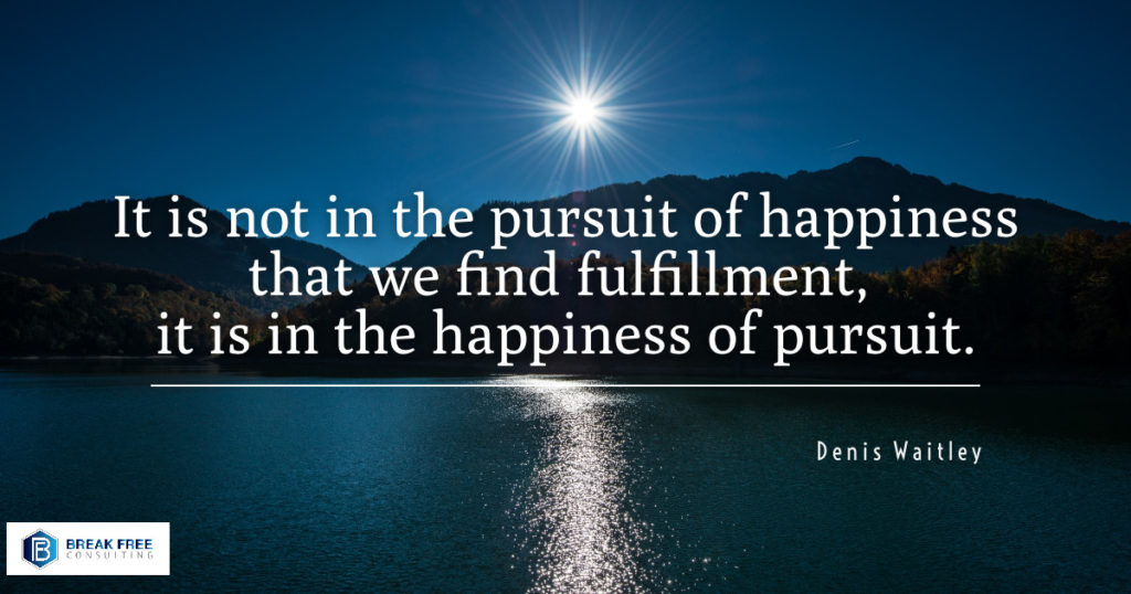 When you only focus on what you want but don’t have, you’re looking at your world from a limited perspective. You’ve narrowed your vision to the “have not‘s.” Let’s open that up so you can see more broadly. As Denis Waitley says, “it is not in the pursuit of happiness that we find fulfillment, it is in the happiness of the pursuit.”